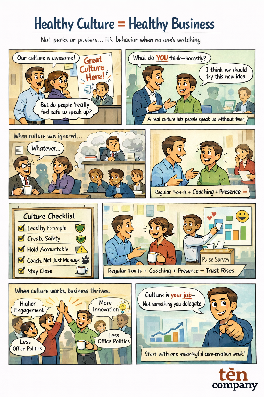Leaders: culture is your job. Don’t delegate it. Chef sache. Start with one meaningful conversation this week—and follow it up. The return on culture is real, but only if you show up.